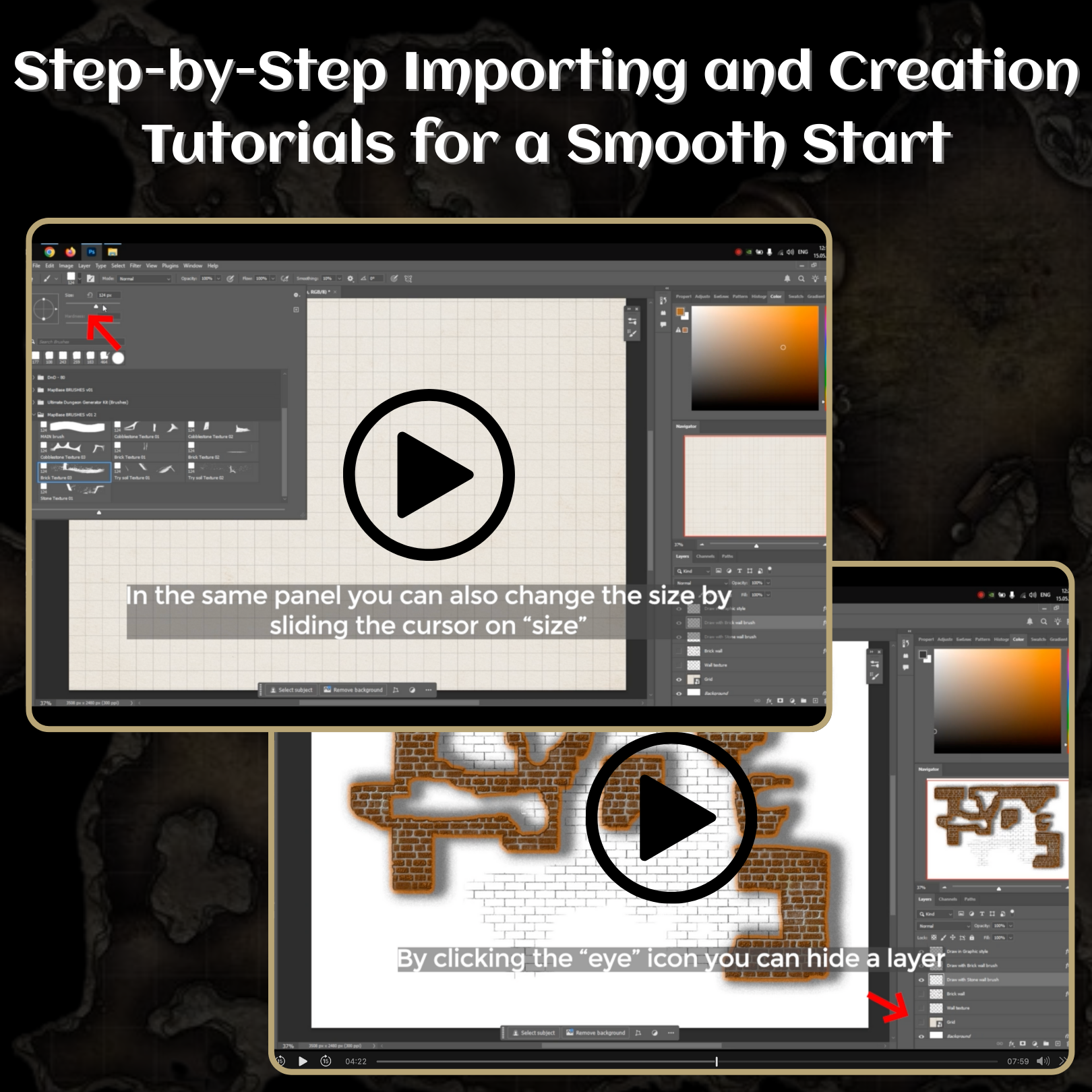 Con questo kit, puoi creare mappe di dungeon di qualità professionale in modo rapido e semplice, anche se non sei un esperto di software, e puoi usare il tuo programma preferito ! Grazie a una raccolta di texture pennello per muri in mattoni, pietra e roccia (disponibili in diversi stili), avrai sempre gli strumenti giusti per creare ambienti immersivi e dettagliati.